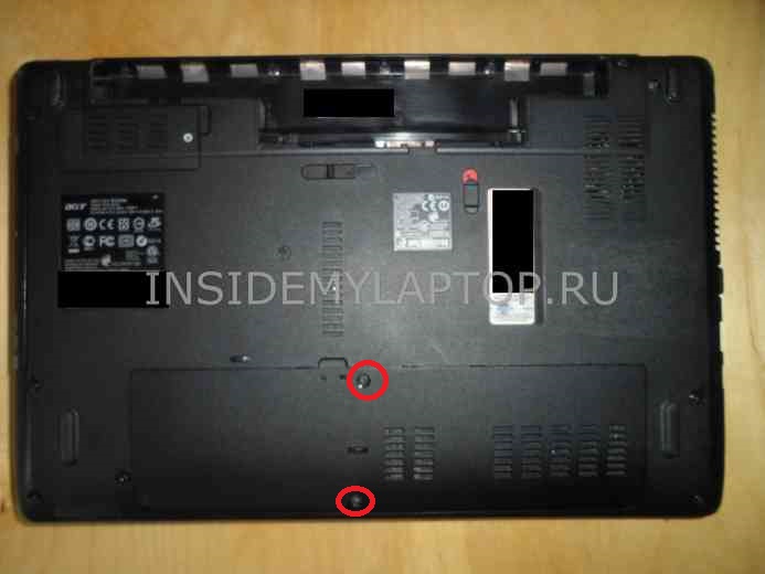 Шаг 2: Теперь можно приступить к замене. Накопитель находится в сервисном отсеке. Крышку сервисного отсека удерживают винты (2шт.) — выкручиваем их и снимаем крышку: