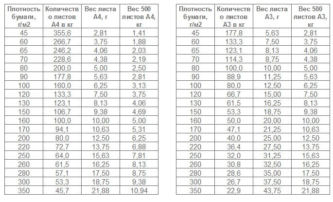 Если известна плотность, то вес листа бумаги определить тоже несложно. Например, лист А4 с цифрами на упаковке 80 г/м2 будет весить почти 5 граммов. В стандартной пачке такой бумаги 500 листов, значит, вес пачки составит около 2,5 килограммов. Если реальный вес превышает данный показатель, скорее всего, не соблюдались условия хранения, и уровень влажности бумаги выше нормы.