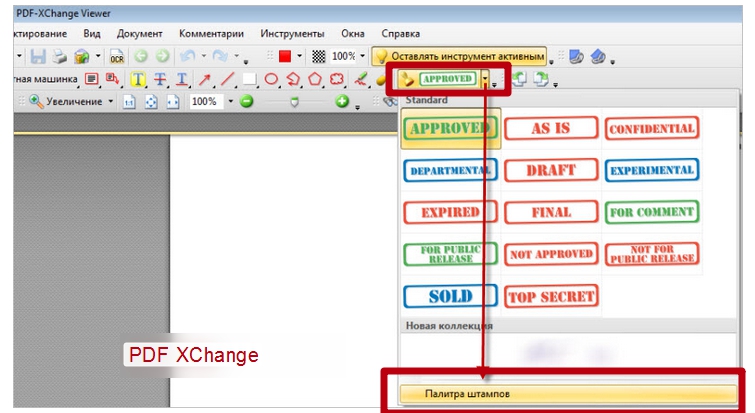 Adobe Acrobat предлагает пользователям функцию “Штамп”. В нее можно добавить собственные изображения или же выбрать их из списка шаблонов.