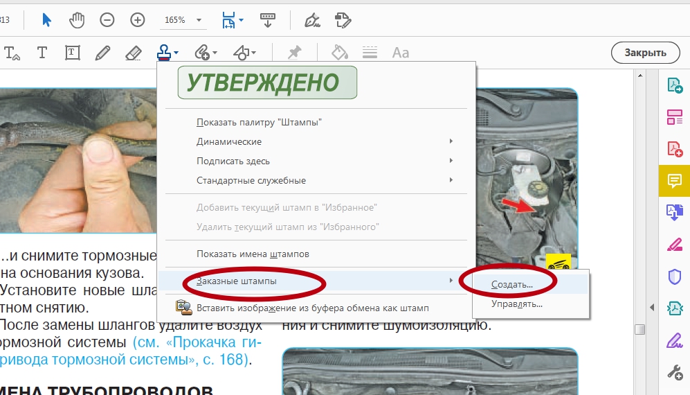 Функция “Динамический штамп” позволяет указать на документе имя печати, день и время ее проставления. Найти ее можно на панели “Аннотация”.