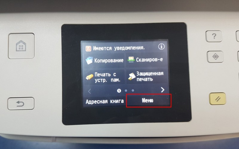 На сенсорном дисплее принтера нажимаем на “Меню“: