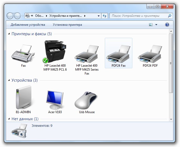 В появившемся окне будут отображаться все установленные принтеры, факсы, мониторы, сканеры, МФУ-шки и так далее: