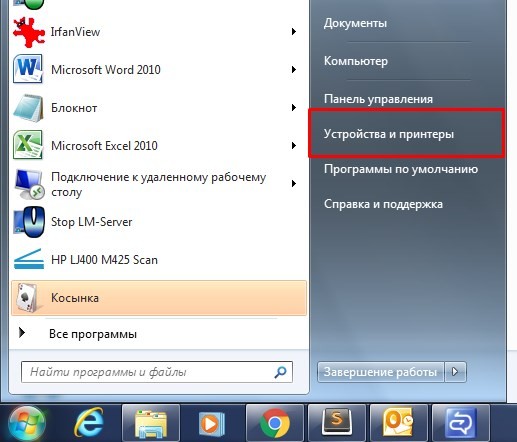 Нам необходимо проследовать в “Пуск” – “Устройства и принтеры“: