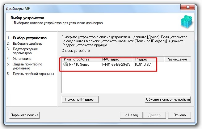 В меню “Введите имя или IP-адрес принтера” необходимо указать IP адрес компьютера, на котором установлен принтер (в моем случае это 10.81.0.50), жмем “Далее“, после чего должна начаться установка принтера. По окончанию установки можно будет начать печать.