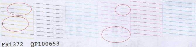 - Если при распечатывании тестового листа проверки дюз (сопел головки) видны пропуски, белые линии, неправильная передача цветов, при этом один из них вовсе может отсутствовать, то высокая вероятность, что произошло засорение. Эта проблема возникает время от времени при интенсивном использовании печатающей техники.