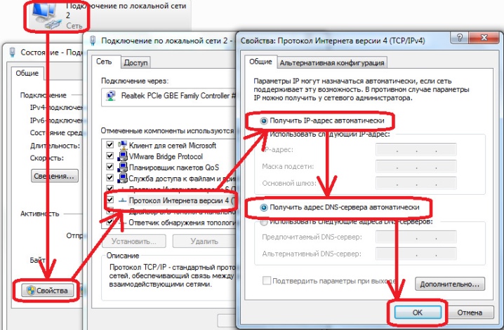 4. Делаем клик правой кнопкой мыши (ПКМ) по локальному подключению переходим в «Свойства», а затем – в настройки «Протокол Интернета версии 4».                                                            как подключить принтер к двум компьютерам фото 2