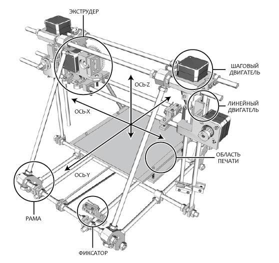 Это стандартный «набор» деталей, на котором основывается принцип работы 3д принтера. Новые модели устройств оснащаются более современными элементами, созданными в рамках последних разработок.