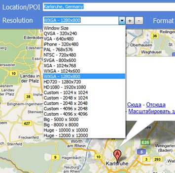 Например, вы хотите попутешествовать на машине, и понятно, что интернета может и не быть. Google Map Saver поможет заранее подготовить карты, сохранив их в нужном вам формате и с нужным разрешением, которые потом можно будет просмотреть на мобильном телефоне или распечатать на принтере. Программа сохраняет карты в PNG (8-бит и 24-бит), JPG (низкого, среднего и высокого качества), BMP и TGA. Но самое интересное — это размеры сохраняемых карт. Они адаптированы не только под обычные мониторы и экраны огромных разрешений (вплоть до 12000X12000), но и под разные экраны мобильных гаджетов (QVGA, VGA, iPhone).