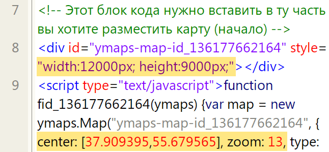 Код вставки меняется от версии к версии, но в нём без проблем находятся нужные цифры, которые нужно заменить. В примере выше заданы такие параметры: