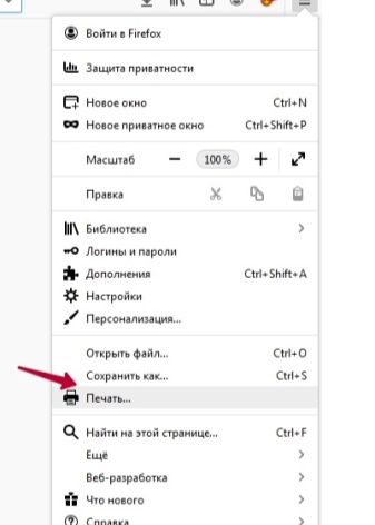 Произвести вывод интернет-страницы можно и другим способом. Для этого в каждом браузере присутствует функция печати. Достаточно только открыть необходимую страницу, зайти в настройки браузера и активировать строчку «Печать».