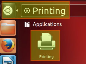 На нашей клиентской машине с Ubuntu 12.04 мы открываем меню «Printing» (Печать), т. е. «Dash» -> «Printing» (Панель управления -> Печать). Обратите внимание, что в других дистрибутивах название может немного отличаться, например, «Printers» (Принтеры) или «Print & Fax» (Принтер и факс):