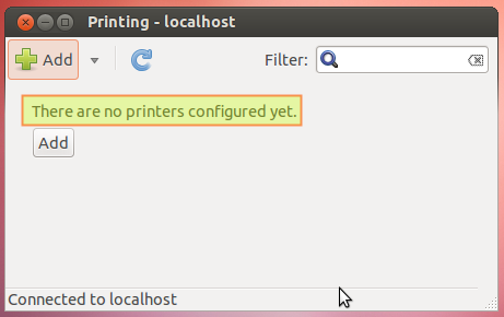 В нашей клиентской машине с Ubuntu принтеры еще не добавлялись: