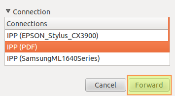 Чтобы установить струйный принтер Epson и принтер PDF, мы должны повторить шаги с 1 по 5, и каждый раз выбирать соответствующую очередь печати. Например, на рисунке, приведенном ниже, мы выбираем принтер PDF: