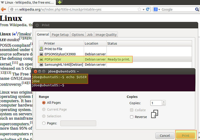 Вы можете этим быть удивлены: Зачем устанавливать сетевой принтер PDF, когда большинство (если не все) в настоящее время настольных дистрибутивов Linux поставляются с встроенной утилитой «Print to file» (Печать в файл), которая позволяет пользователям создавать на лету файлы PDF?