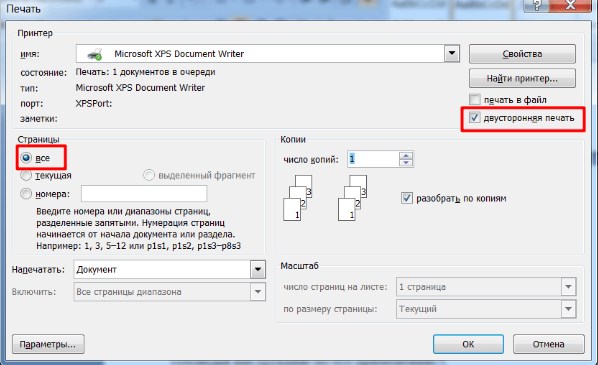 - Отметьте галочкой пункт «Двусторонняя печать».