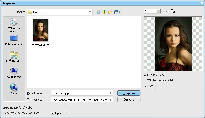 3. В появившемся окне выберите фотографию для документа и нажмите кнопку «Открыть.