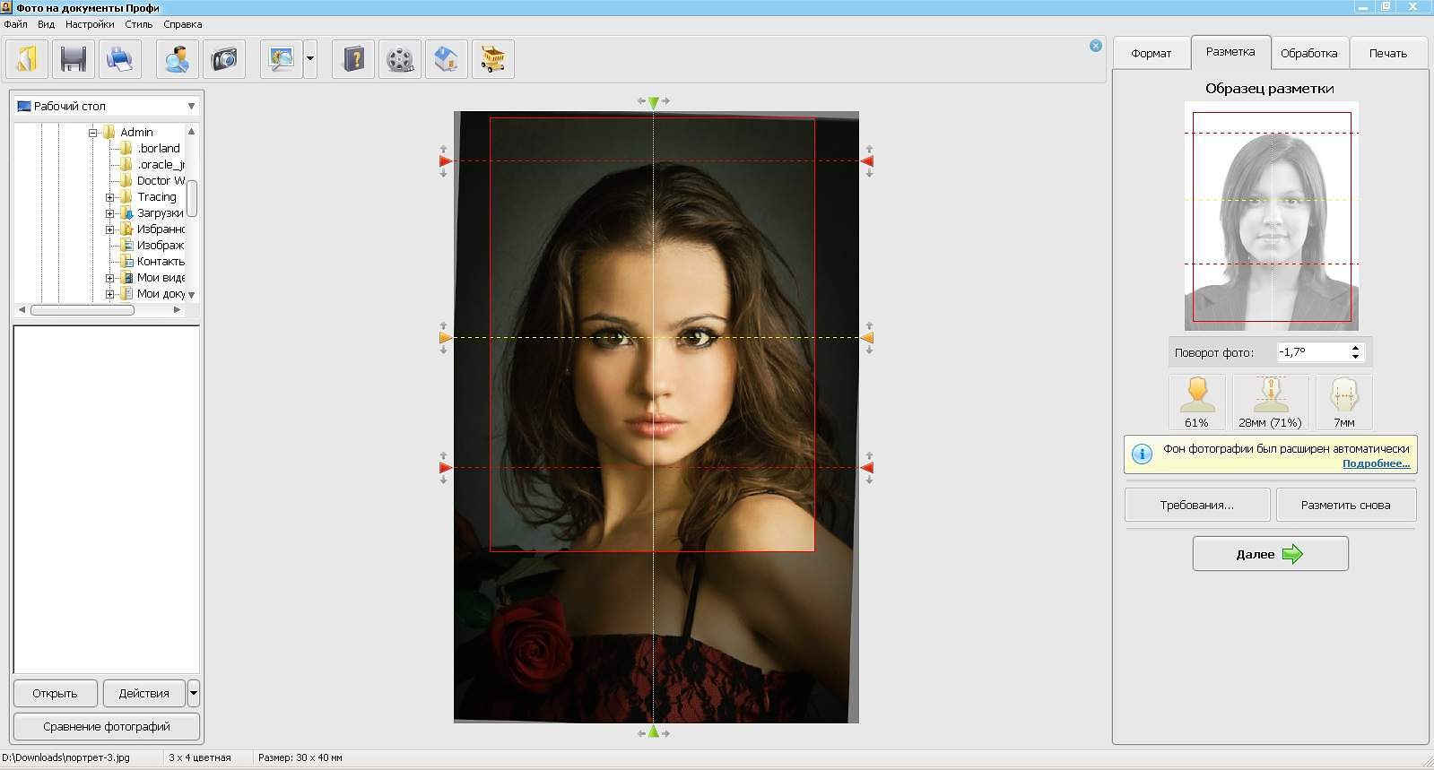 Русский сервис, на котором можно вручную обрезать фото онлайн 3 на 4. Автоматического распознавания на IDPhoto нет, так что перед тем, как приступать к работе, внимательно ознакомьтесь с требованиями. Всю документацию можно найти на этом же сайте. Пользователю нужно загрузить снимок и установить разметку по строго установленным правилам, после чего он может дополнительно корректировать контрастность и убрать фон. Результат можно сохранить как отдельный файл или раскладку на листе А4 для самостоятельной печати.