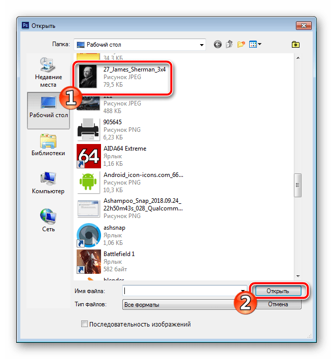 4. Появится окно, в котором требуется найти нужное изображение и выделить его с помощью мышки, после чего нажать «Открыть».