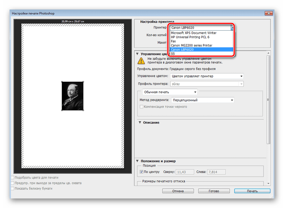 11. Появится окно со всеми доступными принтерами. Следует выбрать требуемый.