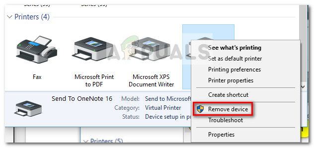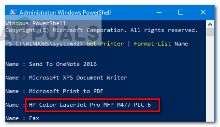У некоторых пользователей есть успешно удалось удалить упорный принтер, который отказывался уходить в Windows 10, с помощью PowerShell. Хотя этот метод потребует от вас немного технических знаний, он, как сообщается, более эффективен, чем большинство методов, выполняемых через графический интерфейс.