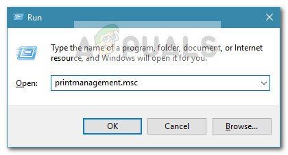 - Нажмите клавишу Windows + R , чтобы открыть новое окно «Выполнить». Затем введите printmanagement.msc