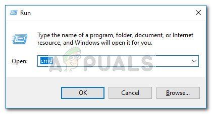 - Нажмите клавиша Windows + R , чтобы открыть новое окно “Выполнить”. Затем введите « cmd », нажмите Ctrl + Shift + Enter и нажмите Да в Запрос UAC (контроль учетных записей) , чтобы открыть расширенную командную строку .