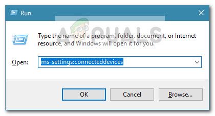 - Нажмите клавишу Windows + R , чтобы открыть окно “Выполнить”. Затем введите ms-settings: connecteddevices
