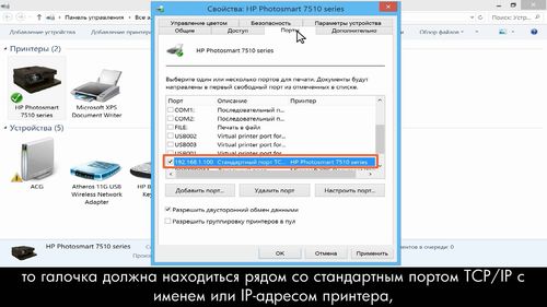 • Рядом с названием принтера будет находиться набор цифр-это и есть необходимый адрес.