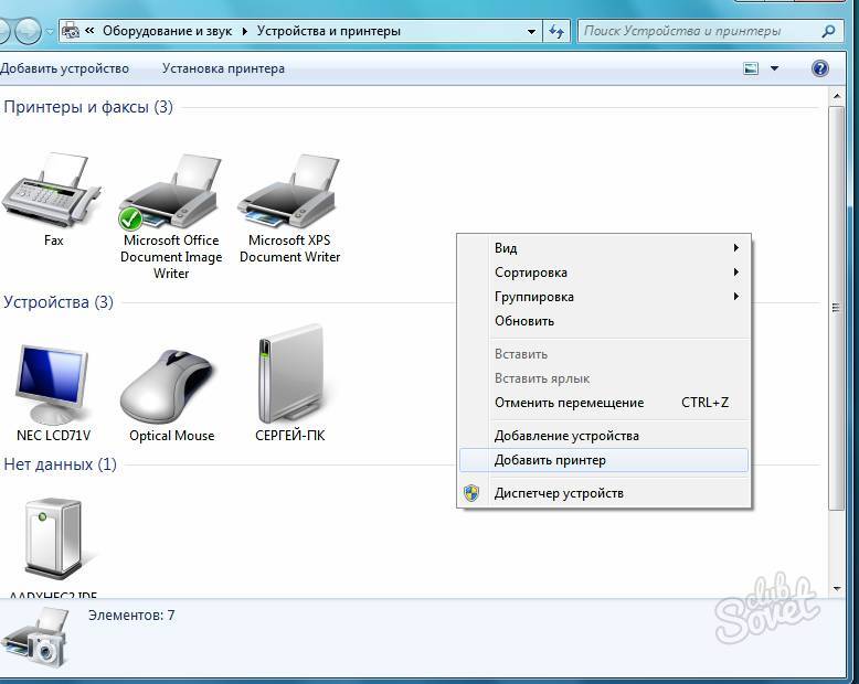 Если в списке устройств нет периферийного принтера, то драйвера нет в системе. Если принтер куплен не так давно, то к нему должен быть диск с драйвером. После установки программы принтер автоматически пропишется в опции «Устройства и Принтеры».