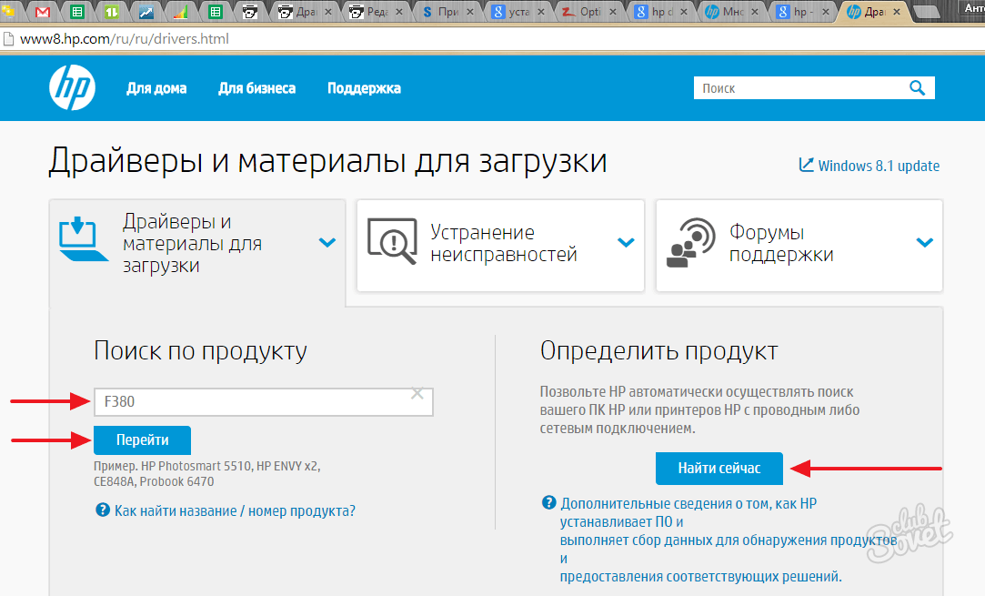 • Зайдите в раздел, связанный с поддержкой клиентов. Найдите нужную модель принтера.