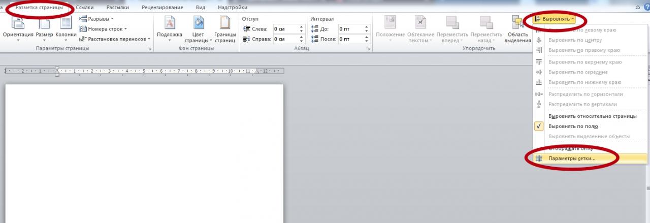 Фигура нужна только для того, чтобы в Word включилась вкладка «Средства рисования», где в разделе «Выровнять» можно найти пункт «Параметры сетки».