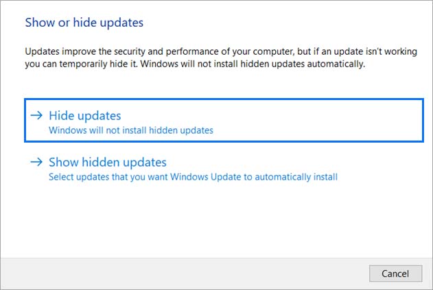 Запустите пакет и выберите «Hide updates».