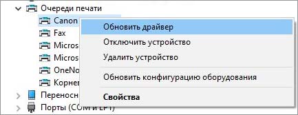 Обновить драйвер принтера