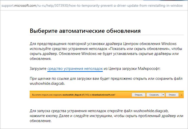 Теперь проверьте, правильно ли он работает. Если да, перейдите на сайт Майкрософт и загрузите пакет wushowhide.diagcab .