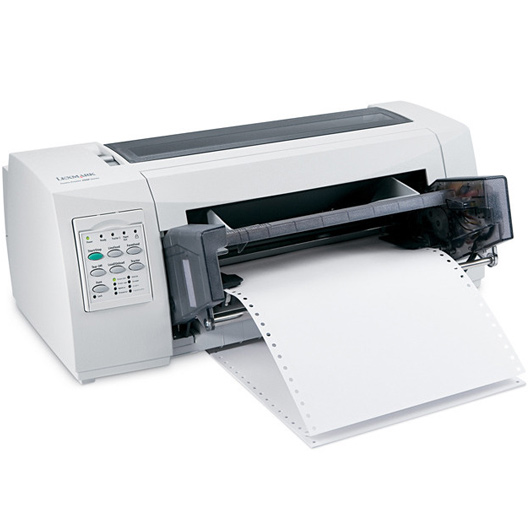 Lexmark Forms Printer 2590n. Это шустрая модель, которая принимает как стандартные носители, так и узкие ленты повышенной емкости. «Работает» с разными шрифтами, соответственно, расширяется перечень носителей по формату и назначению. Производительность этой модели достигает 556 знаков за секунду. Встроенный компактный дисплей дает возможность заранее оценить шрифт и другие настройки. Можно быстро переключаться между форматом носителя (листовой, ленточный, одно или многослойный).