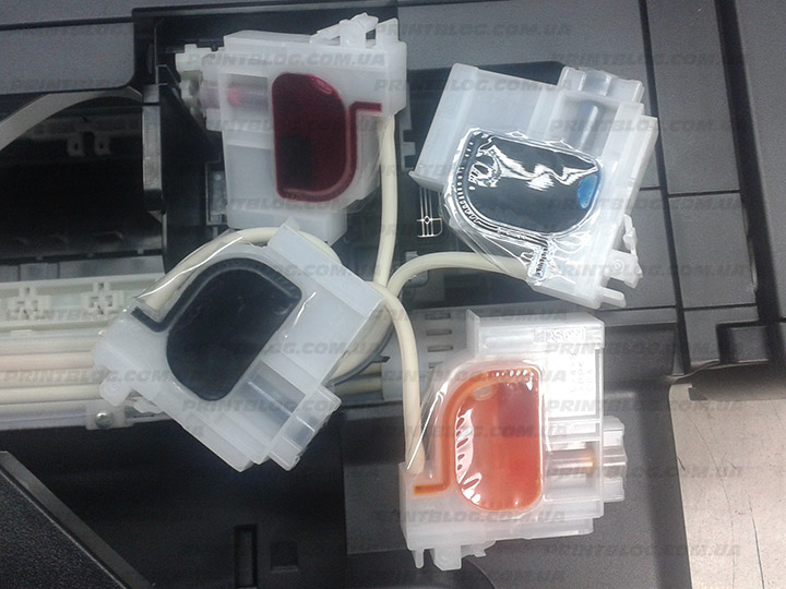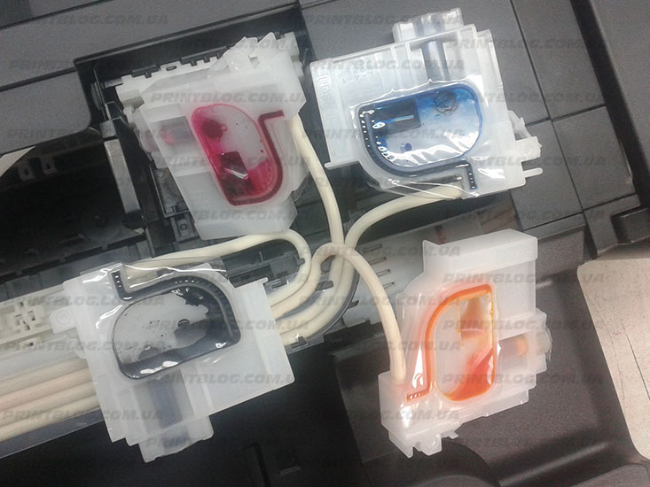 Однозначно сказать, закончились ли чернила в амортизаторах СНПЧ, мы можем только вытащив амортизаторы и визуально оценив их наличие там.