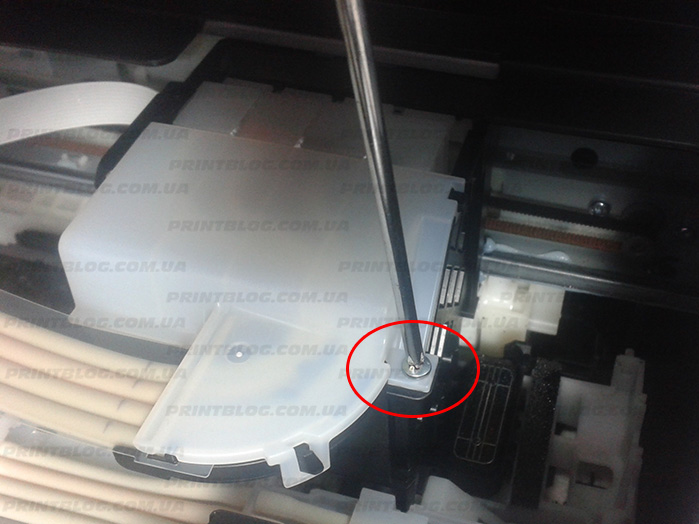 Для начала вы можете попробовать очистить, но если это не сработает, вам придется удалить чернильницу. Первым делом снимите верхнюю крышку, которая необходима для закрытия емкостей с чернилами. Его застежки — это саморез и две небольшие защелки.