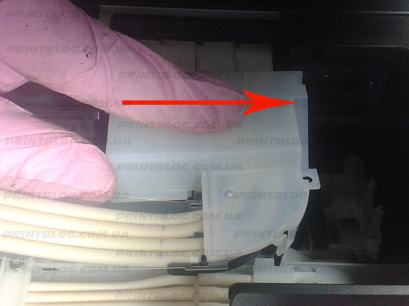- Снимите контейнер для чернил с принтера и отложите его в сторону.