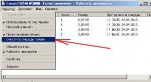 Занята очередь печати