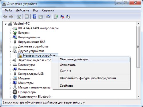 - В меню выбираете «Обновить драйверы».