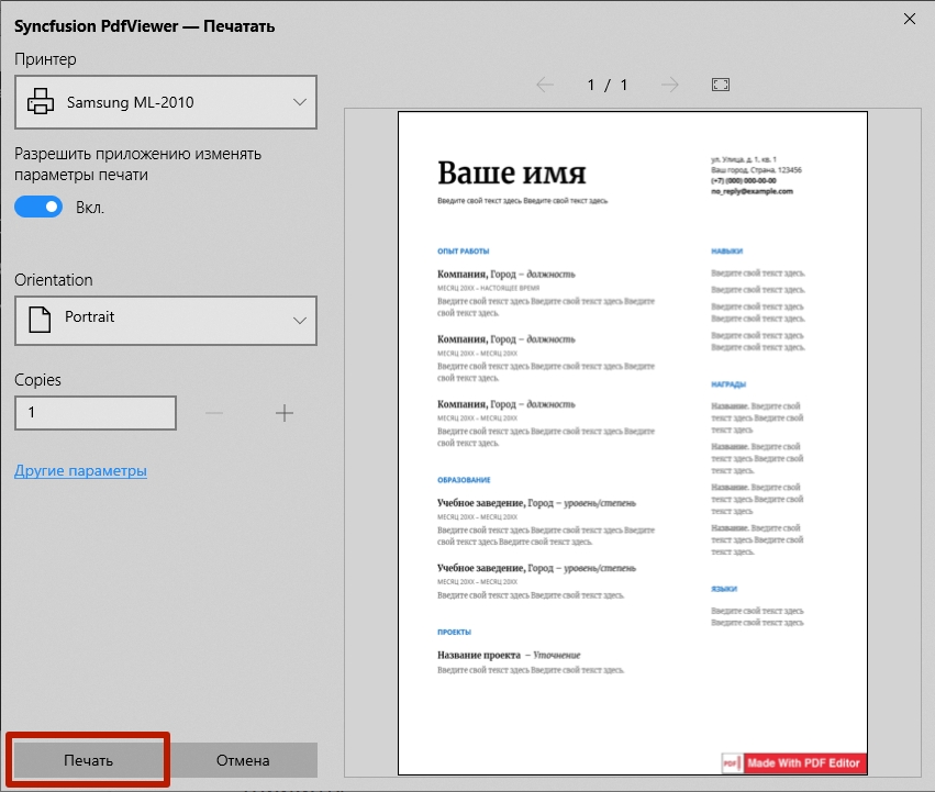 Еще один метод, который не решает проблему, а позволяет временно избавиться от нее, например, если иероглифы появляются только при печати конкретного документа. Тогда можно перевести его в формат PDF и распечатать через любое удобное средство просмотра таких файлов, чем может выступать даже браузер.