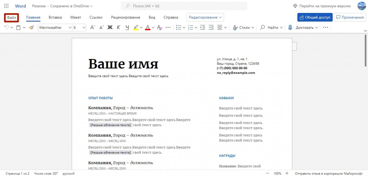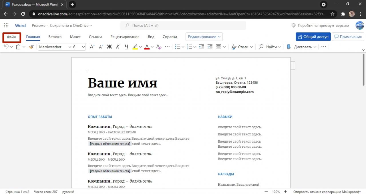 - Перейдите по ссылке https://office.live.com/start/word.aspx?ui=ru-ru