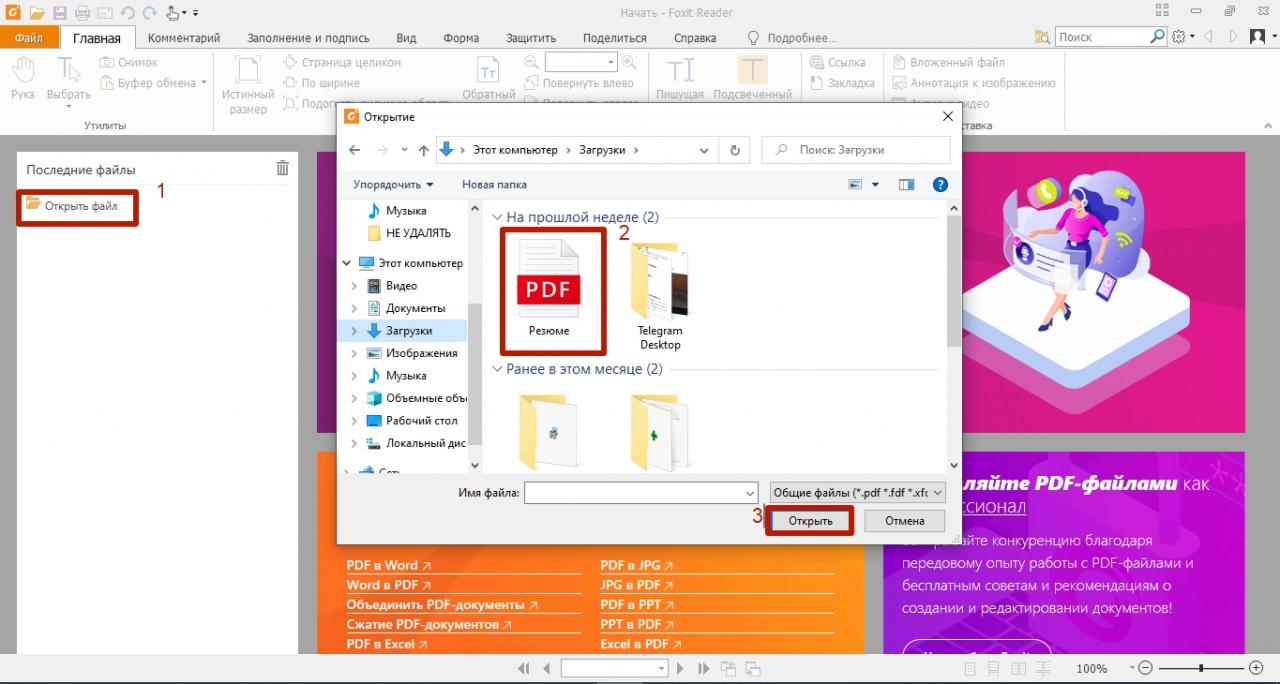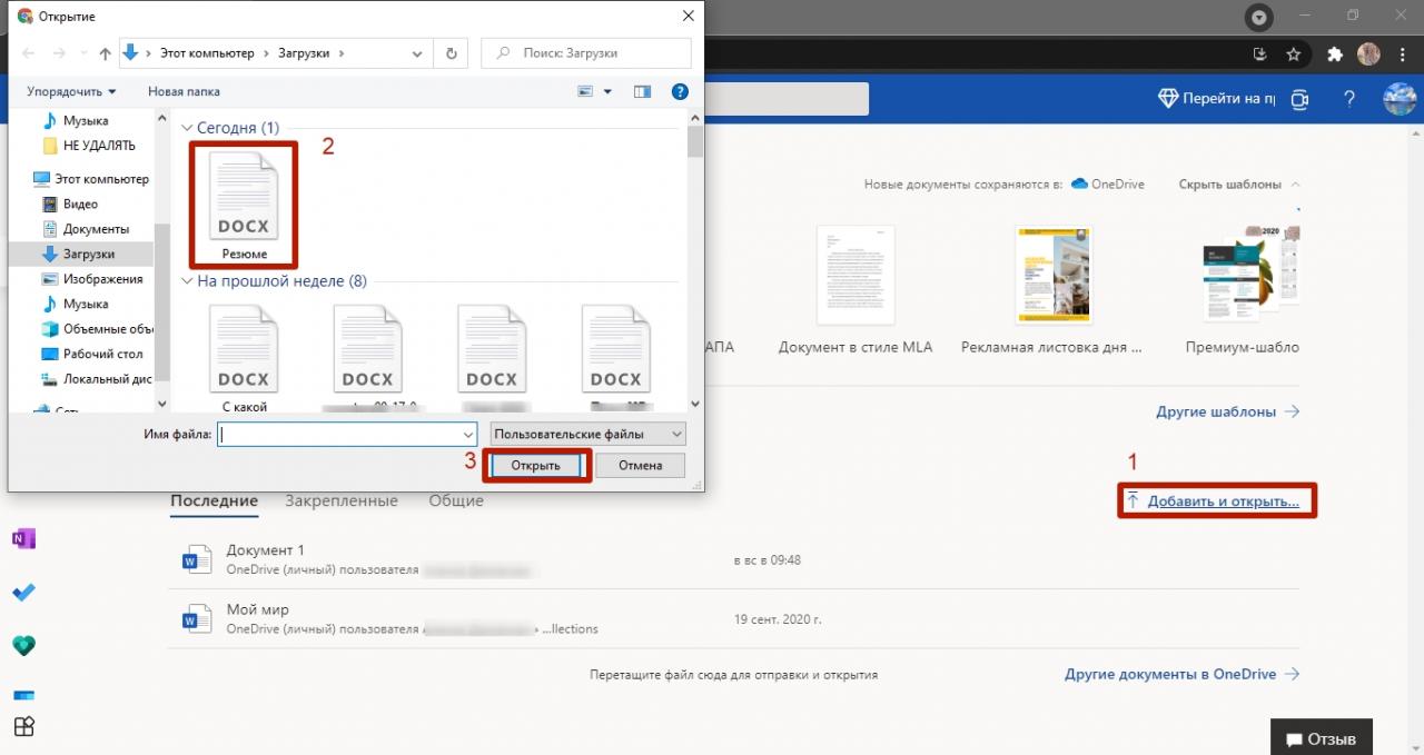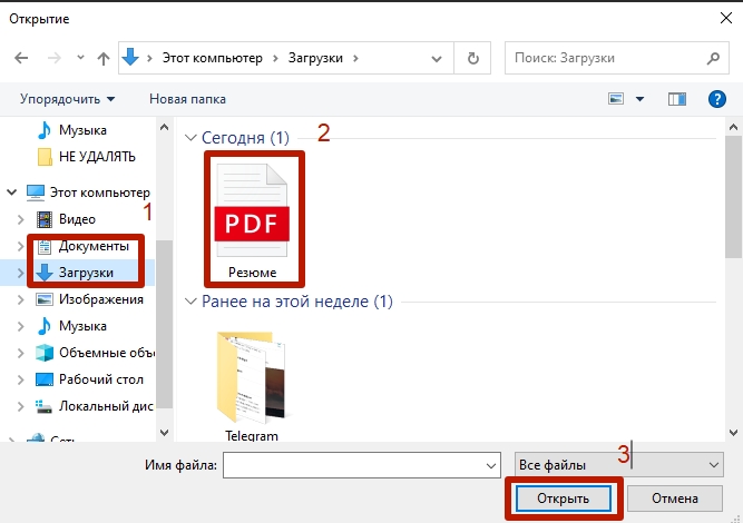 2. Откройте папку «Документы» или «Загрузки» (если Вы скачали файл из онлайн-редактора).