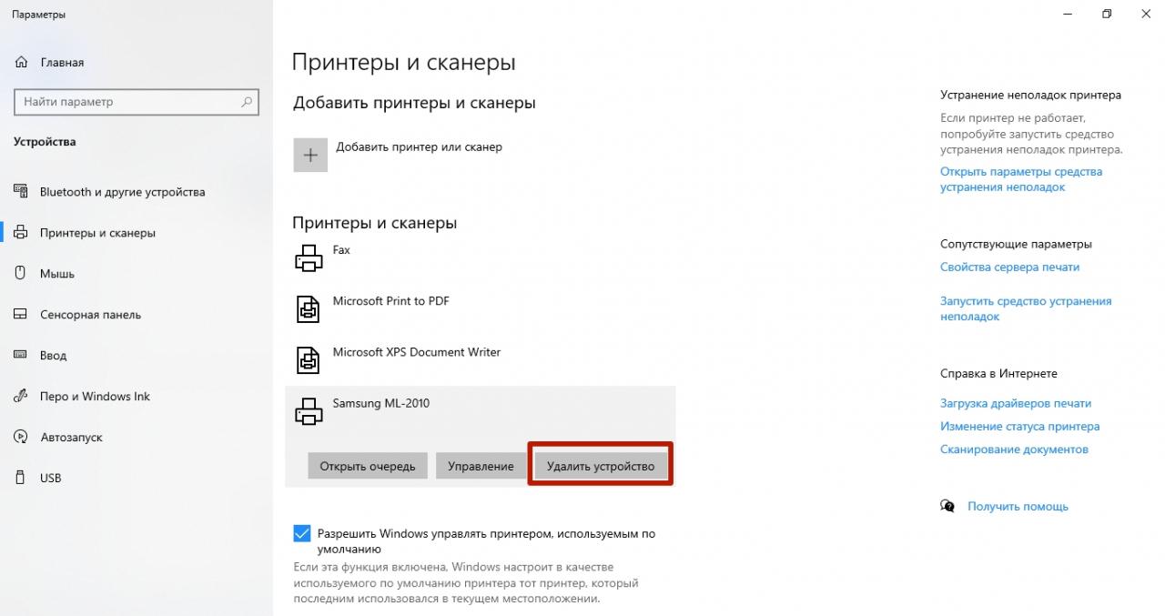 6. Система удалит принтер и его драйвер. Перезагрузите компьютер.