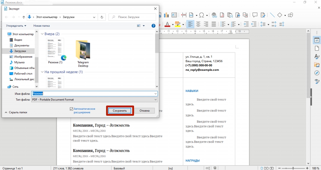 Подходит для платформ Windows, Linux, MacOS. Программа работает с файлами PDF, поэтому переведите файл docx в этот формат. Для этого: