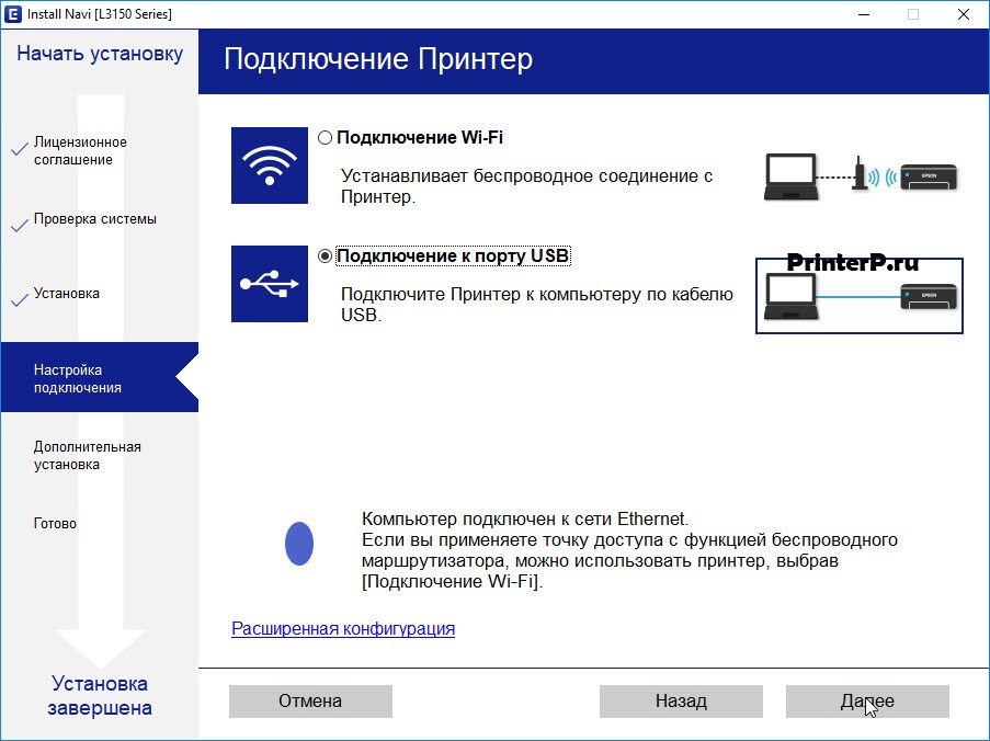 Внимание! Если такой способ подключения не сработает, можно подключиться к принтеру Epson с помощью USB, а уже после выполнить настройку беспроводной сети с помощью вышеуказанной программы.