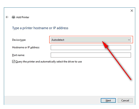 - Выберите Автоматическое обнаружение в раскрывающемся списке Тип устройства.
