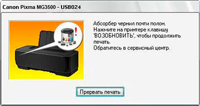 Как узнать, что абсорбер принтера переполнен