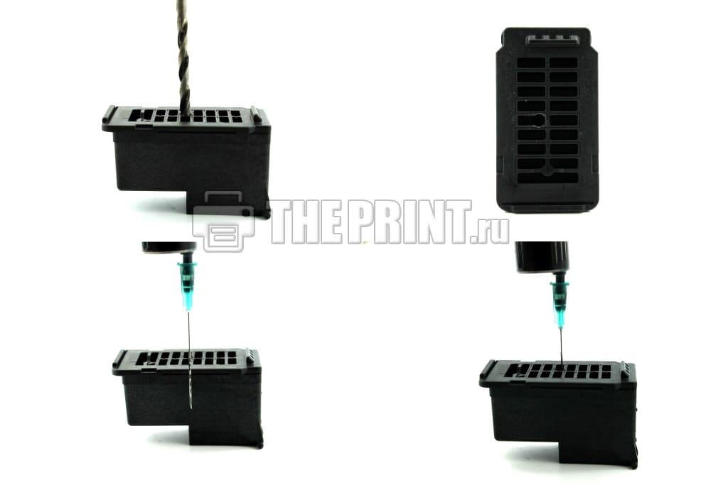 - Вставляем иглу шприца внутрь заправочного отверстия картриджа. Вводить глубоко не нужно, достаточно 10-15 мм. (Рисунок 3)