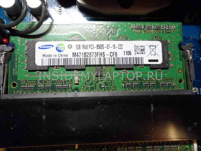 В ноутбуке установлена память стандарта DDRIII. В наличии два модуля, суммарным объемом 3Gb. Максимальный объем поддерживаемой памяти равняется 16Gb:
